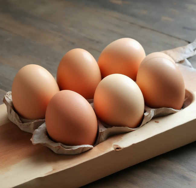 单枚重量控制在55-65克,蛋壳呈天然浅褐色,质地厚实紧实、光泽温润